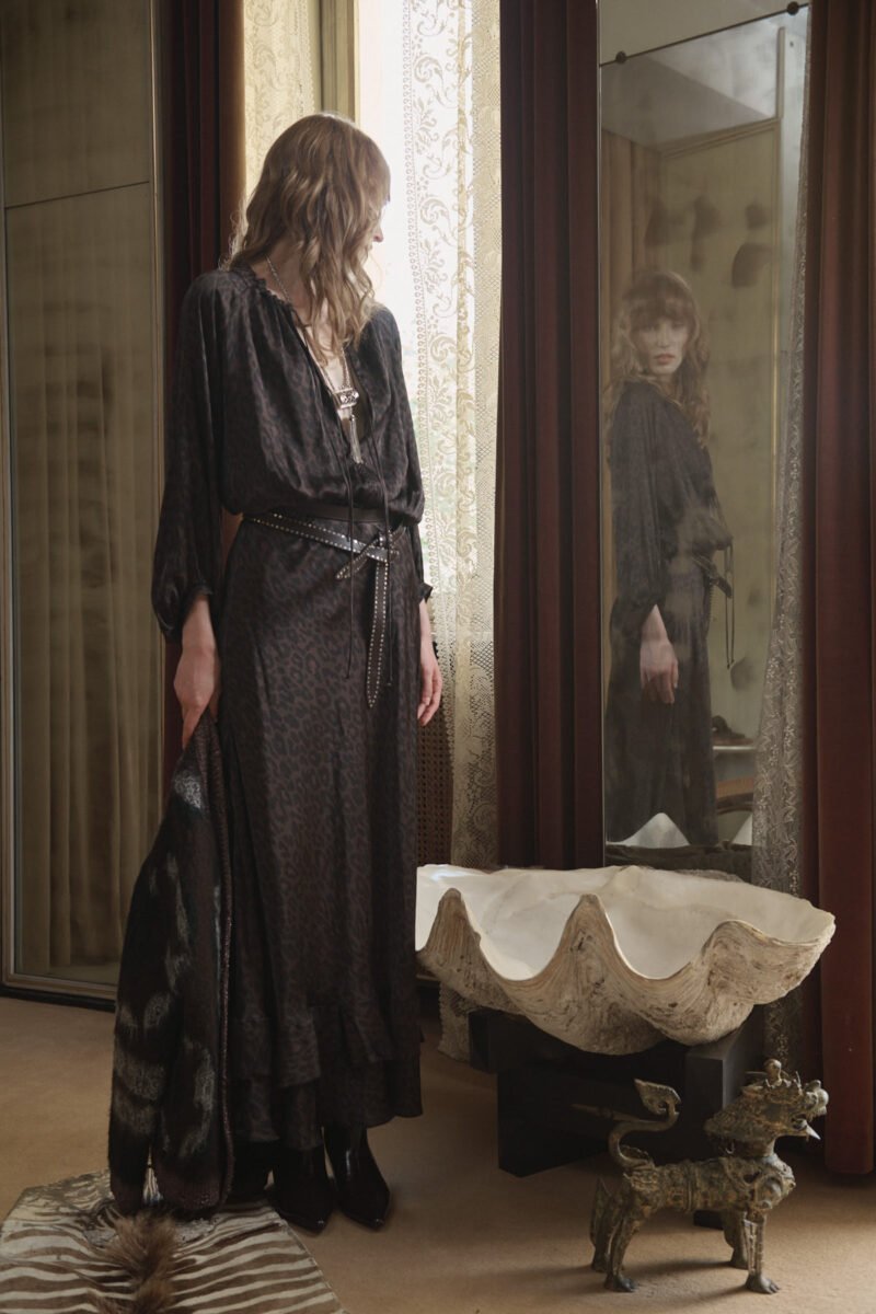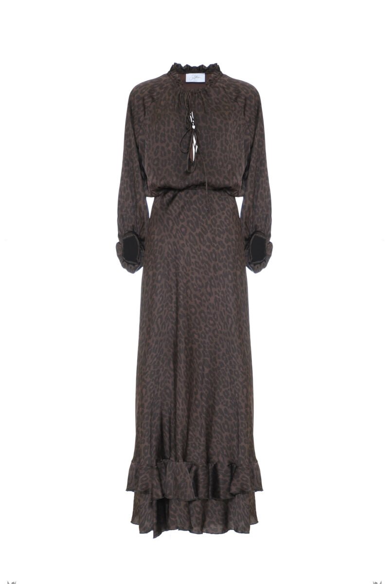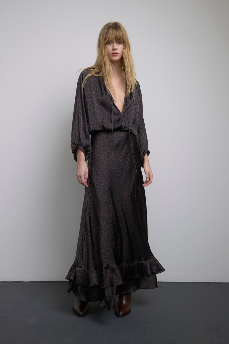 Abito lungo pittore in raso fantasia leopardo – SO ALLURE